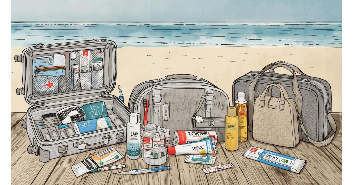 👜Não esqueça o kit de sobrevivência (protetor, higiene e saúde). Afinal, o objetivo é voltar da viagem com boas memórias, e não parecendo um pimentão descascando que esqueceu até de escovar os dentes!